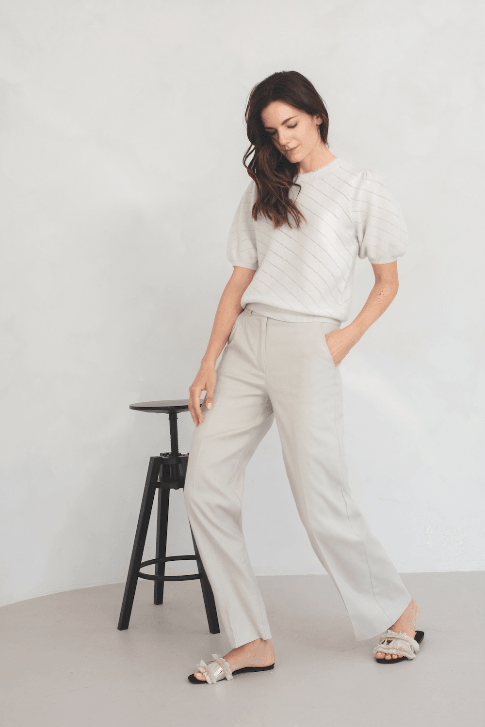 Cashmere Short Sleeve Knit with Stylish Puff Sleeves